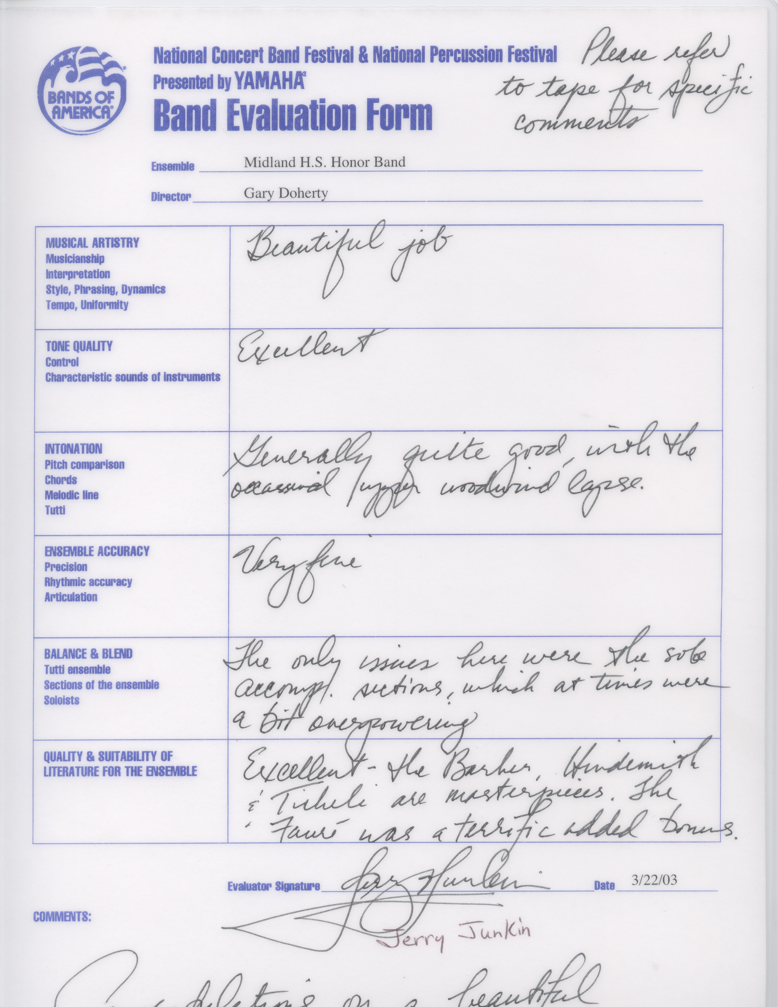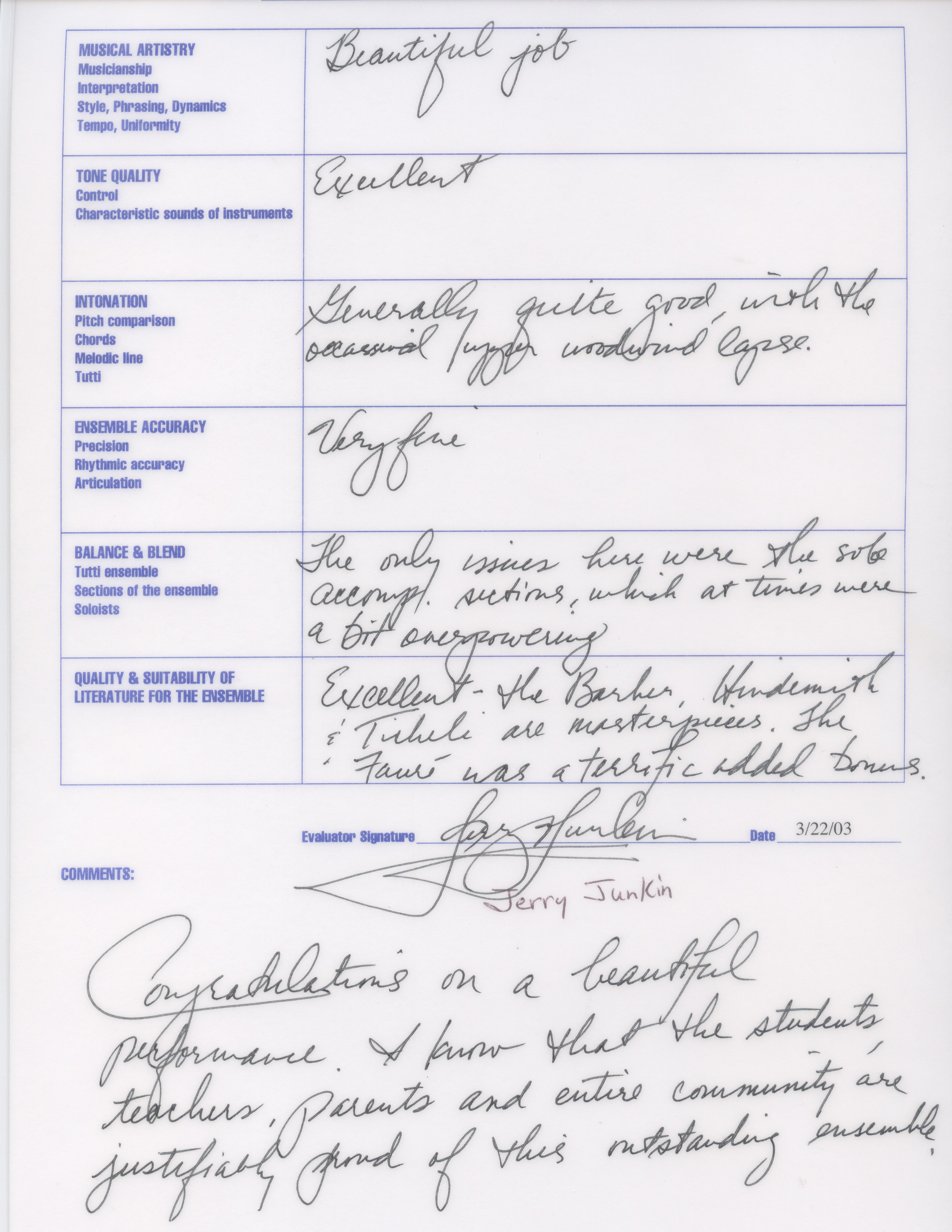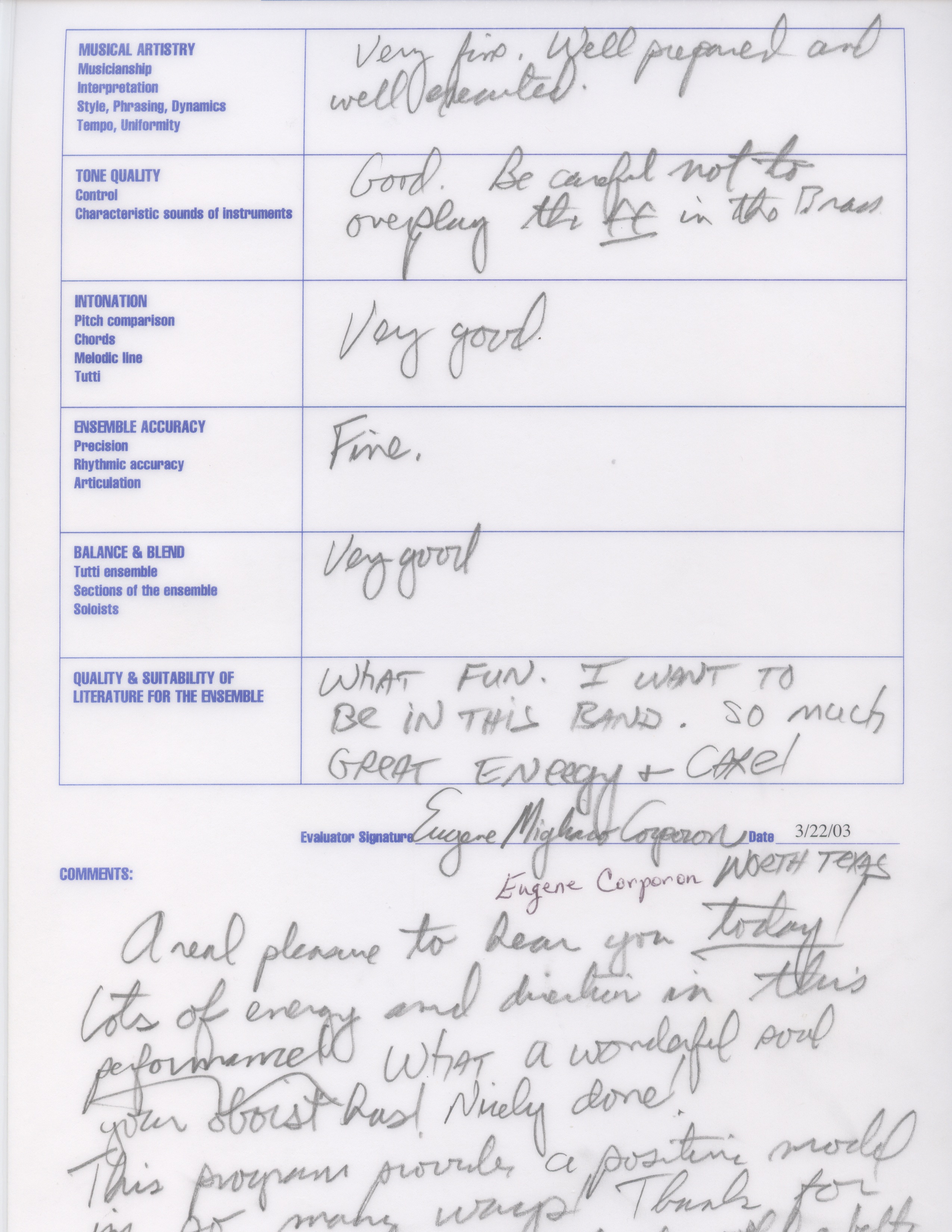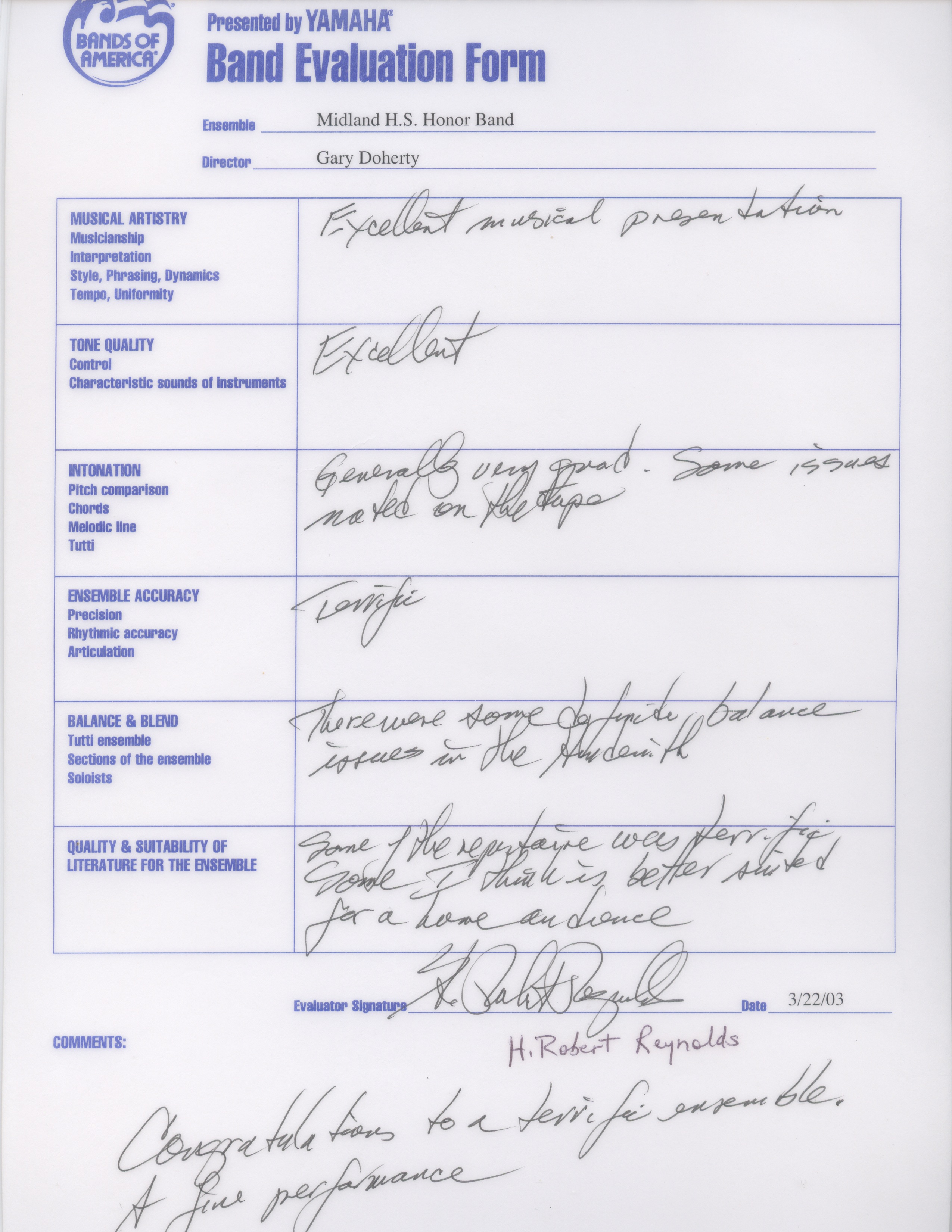Administrative and Artistic oversight for more than 1000 students, 12 full-time teachers, 27 private instructors and more than 50 adjunct staff in the Midland High School Cluster of Schools. Attained International recognition for the artistic merit of these outstanding ensembles. State Honor Band Finalist 5 times, State Wind Ensemble Finalist 10 times, Area and State Marching Band Finalist 8 times. National Concert Band Festival Featured performer in 2003, President George W. Bush’s Invited High School Band for the Inaugural Parade in 2001, American Representative High School Band, London Millennium Parade, January 1, 2000.