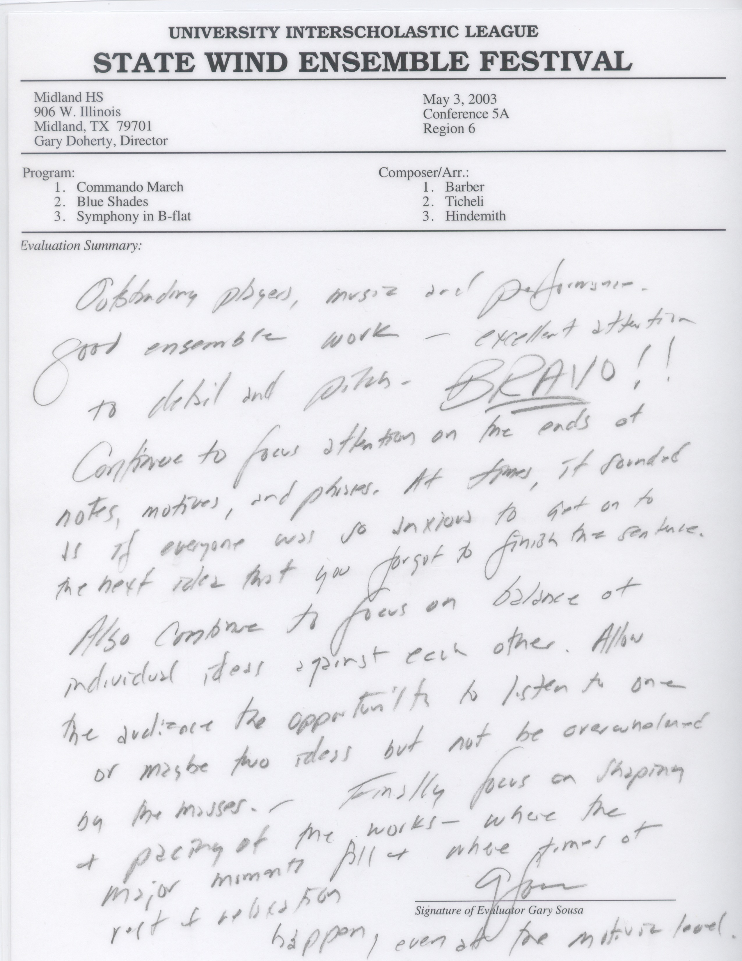 Director of Bands & Cluster Coordinator, Midland High School; Midland, TX––1997-2007
